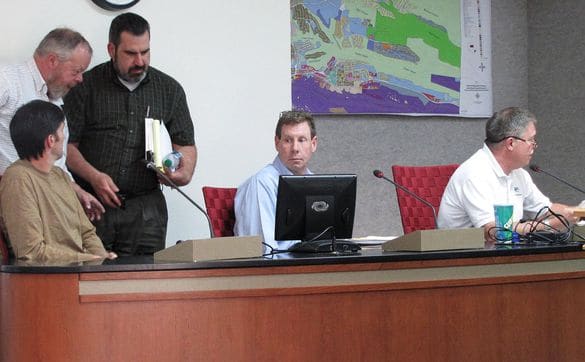 Fred Roach, at left, serves on the Ice Rink Subcommittee and is answering Councilor questions.County Recreation Manager Randy Smith, right, briefed Council on the $1.5 million needed to fund renovations at the Ice Rink. He is asking for $245,000 to redo the crumbling parking lot and $1.277 million to renovate the facility’s restrooms and locker rooms. Mark Rochester, center, of the Hockey Tournament Association is telling Council that the restrooms are a huge safety, ADA and Title 9 issue. Girls don’t have anywhere to dress, he said. Photo by Carol A. Clark/ladailypost.com Read More