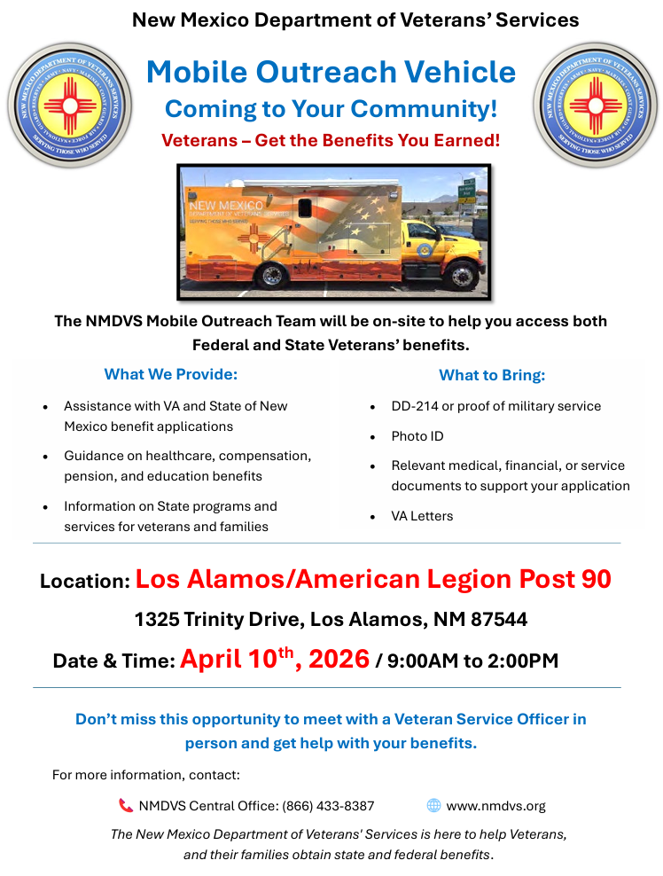 Mobile Outreach Vehicle For Veterans In Los Alamos April 10