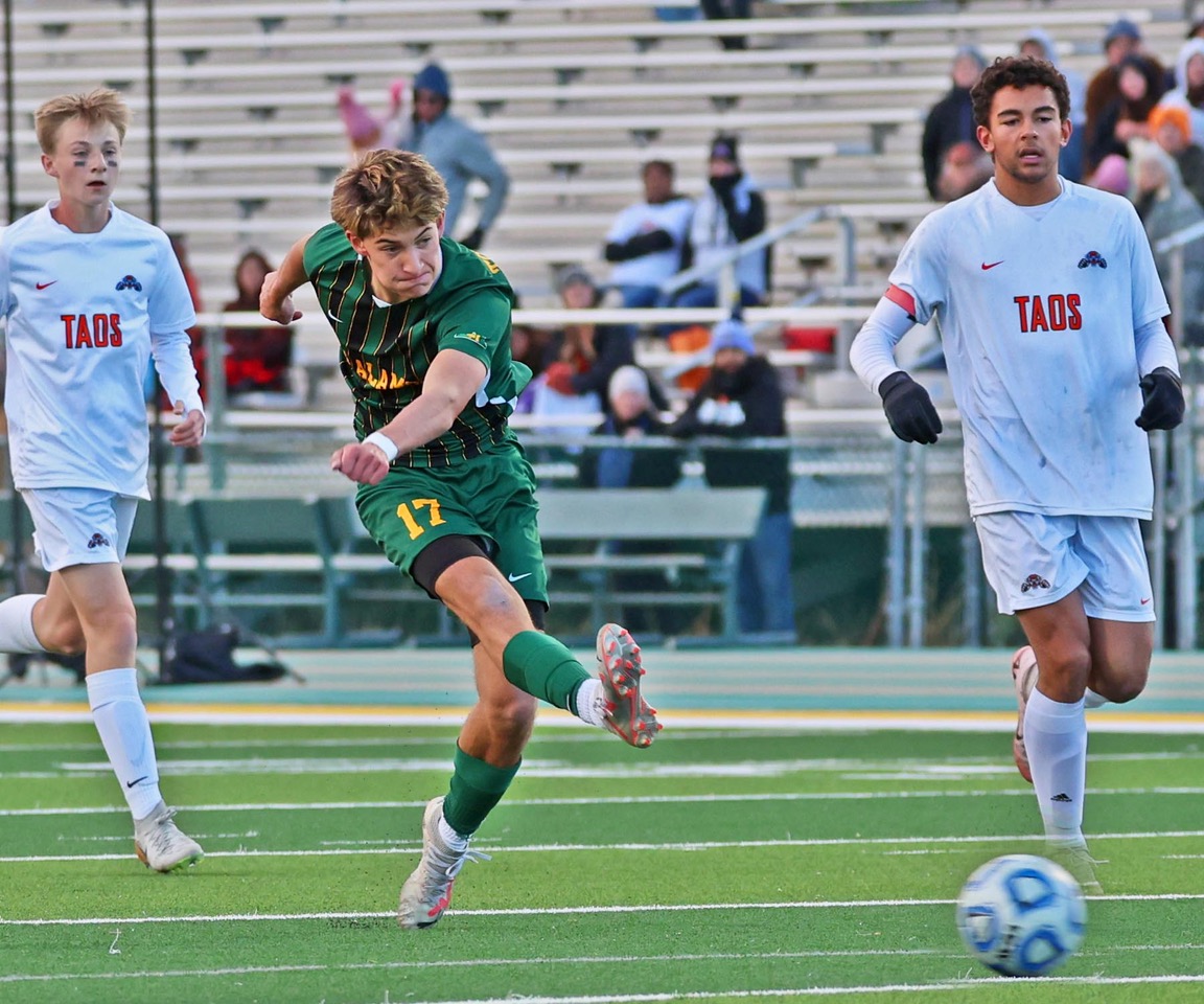 Jayde Ramirez kicks in the first goal of the match in the first half. Photo by John McHale/ladailypost.com