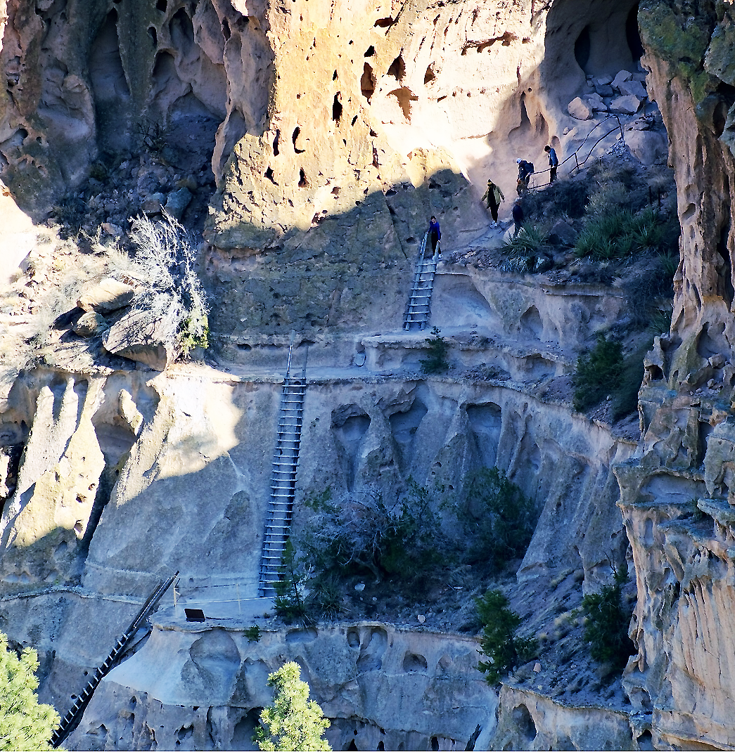 Daily Postcard: Visitors descend the steps and ladders on a partially shaded and steep cliffside March 12 at Bandelier National Monument. Bandelier has officially entered its busy season and recommends arriving before 10 a.m. or after 2:30 p.m. to ensure finding a parking place. Once the limited parking fills vehicles will be turned around at the entrance gate. Bandelier thanks visitors for their cooperation in protecting Alcove House, the cliff dwellings and their own safety by following these guidelines: stay on the trail/ladders, limit to 15 people climbing the ladders to Alcove House, Read More