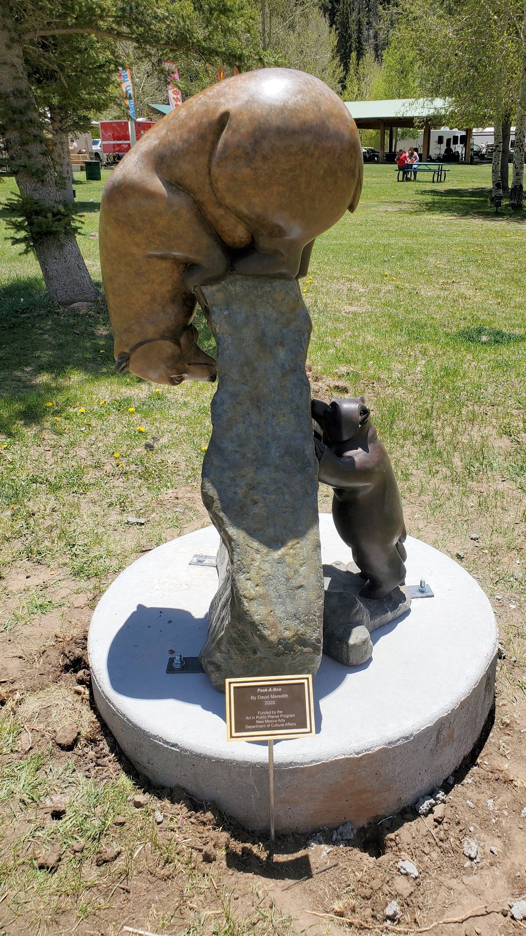 The Town of Red River unveiled its latest artistic addition, “Peek a Boo” May 24, 2024, in Brandenburg Park. This enchanting new sculpture was acquired through the support of the State of New Mexico’s Art in Public Places program, showcasing the town’s commitment to enhancing public spaces with captivating works of art.