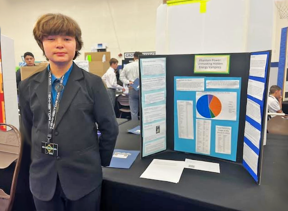 Los Alamos Middle School student Branden Keller was awarded the CO2 & Greenhouse Gas Scholarship in the amount of $2,000 at the 2026 New Mexico State Science & Engineering Fair. Courtesy/LAPS