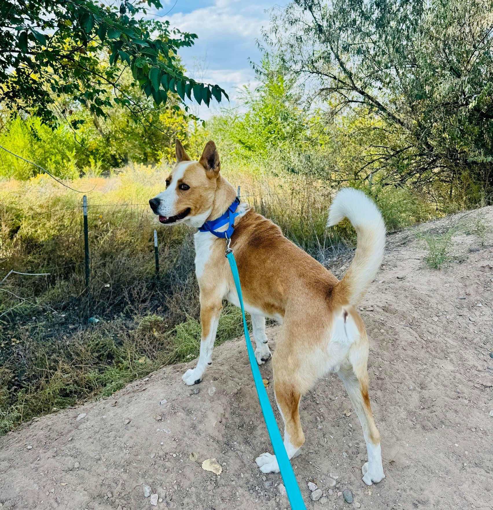 Blanco is a reminder that a little love and kindness can heal the deepest wounds and fears – and that the resilience of dogs is nothing short of remarkable. When Blanco arrived, he was so terrified, he couldn’t even walk – he collapsed on the ground and slithered down the hallways on his belly instead. But look at this brave boy now, standing like Leonardo DiCaprio being the king of the world on the Titanic. Speaking of Leonardo, how handsome is Blanco? He’s a stunner and turns heads with his unique look, curly tail, and inquisitive eyes. Though he’s still a little nervous with his new surroundings, he’s proving just how brave and willing he is to try. Leo … errr Blanco … is 6 years old and 65 lbs., and he goes home neutered, vaccinated, microchipped, and with six months of free heartworm prevention – and his adoption fee is waived. Visit espanolahumane.org. Courtesy/EH