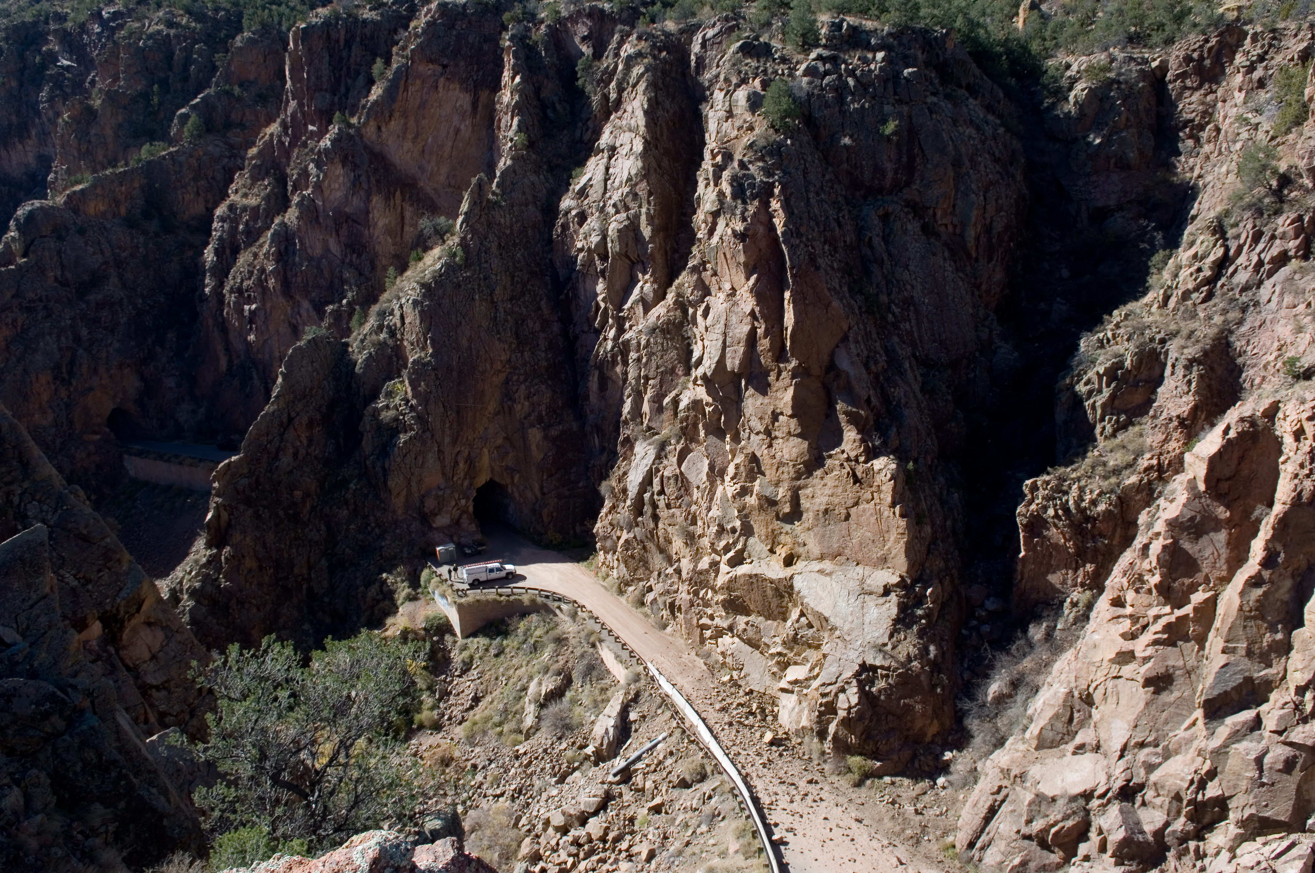 The Gilman Tunnels and Forest Road 376 Slope Stabilization project involves removing the immediate rock fall danger as well as stabilizing the rock cliffs surrounding the tunnels. A contractor will first identify and remove loose and unstable rock using a combination of hand tools and mechanical equipment. Then polyurethane resin is injected into each fracture to secure the cliff walls and tunnel portals and finally rock bolts are installed to increase stability.