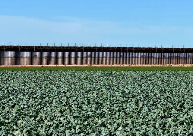 Against the Wall: A small crop was spotted in a village located on the border of the U.S. and Mexico. The border wall between the two countries can be seen just beyond the crop. Photo by Gary Warren/ladailypost.com