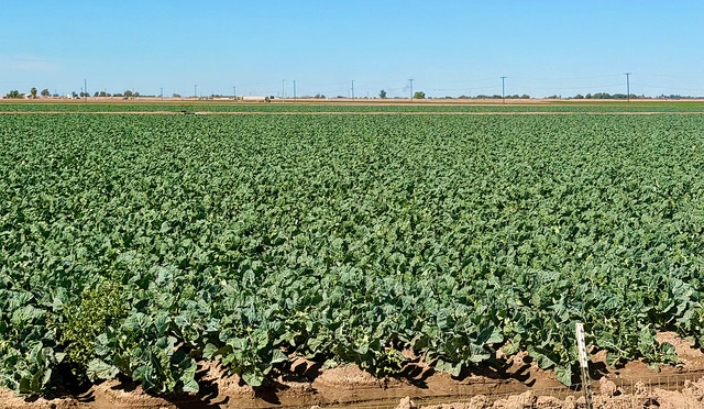 Crops can be grown year-round in the sunny, warm climate of Yuma, Ariz. Winter is a busy season, as that is when the majority of the green leafy vegetables are grown in the area. Yuma County supplies about 80-90 percent of the country’s leafy vegetables. Winter crops include varieties of lettuce, cauliflower, broccoli, kale, and root vegetables such as carrots.