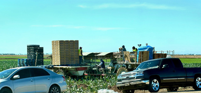 Processing: In addition to harvesting the crops, workers process the vegetables and box them. Transport trucks will then pick the boxes up and deliver them to warehouses where they are prepared for shipment across the country. Photo by Gary Warren/ladailypost.com