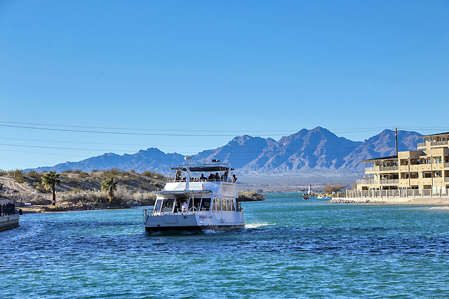 Tour Boat: A tour boat returns to its dock at Lake Havasu City, Ariz., which is located in the canal near the London Bridge. The tour boat crosses Lake Havasu and docks at Havasu Lake, Calif. allowing passengers to enjoy and see the area from a different perspective. The Chemehuevi Tribe owns the Havasu Landing Casino and Hotel at the dock on the California side of the lake. Photo by Gary Warren/ladailypost.com