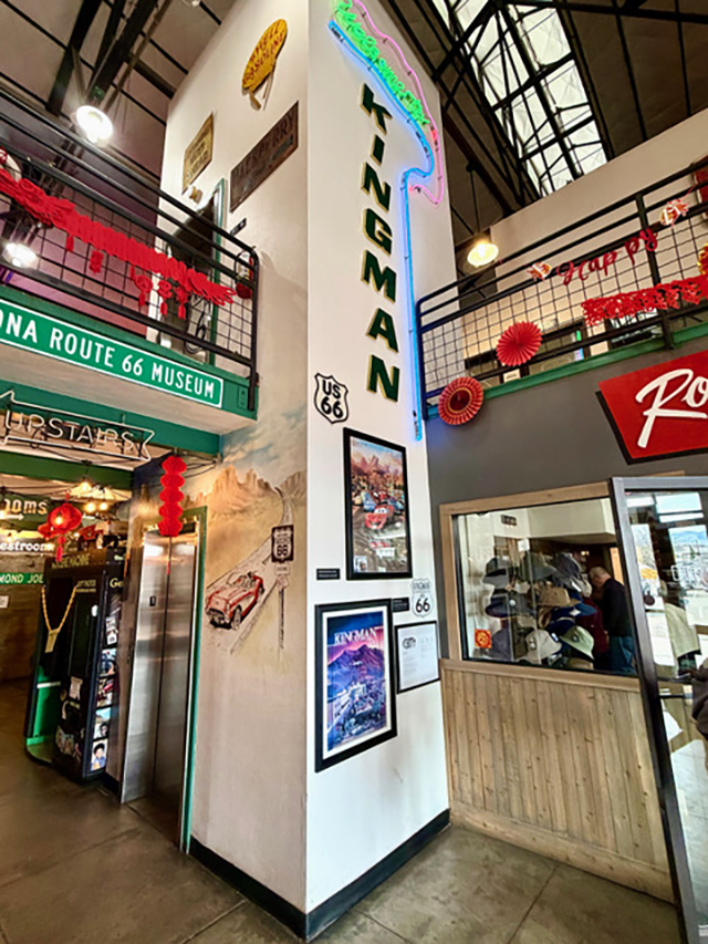 The Arizona Route 66 Museum is located in the same facility as the Kingman Visitors Center with several nice exhibits featuring the famous roadway. A first class visitors center and gift shop are downstairs and the Route 66 Museum is upstairs. Also in the facility is an Electric Vehicle Museum featuring electric vehicles from decades ago up to the current models we see on the road today.