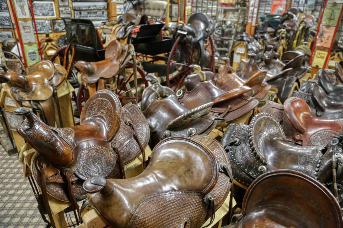 Museum: The Don King Museum is next to the shop and saddle area through an open doorway. The museum inventory is huge and includes almost any western memorabilia imaginable. Saddles, western carriages and wagons, Indian artifacts, guns and walls of historic photos and posters are just the beginning of the massive collection of Don King. Photo by Gary Warren/ladailypost.com