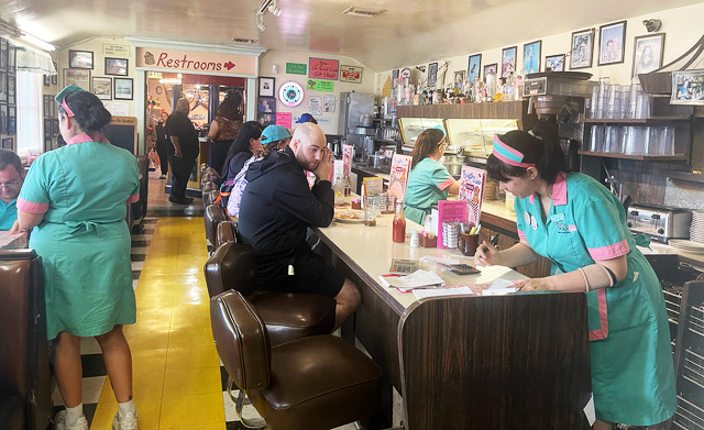 After opening, the couple decided to enlarge the restaurant and furnish it with memorabilia from their former careers around a 50s diner theme. The restaurant today is almost 10,000 square feet and it is busy every time we have visited the diner.