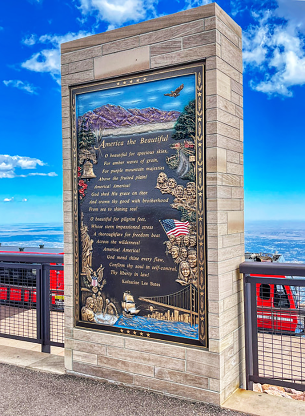 In 1893, English teacher Katharine Lee Bates stood on the grounds atop Pikes Peak, taking in the breathtaking views of the mountains and distant plains. She later wrote the beloved anthem “America the Beautiful”. Today a beautiful memorial with the words that she wrote sits at the peak for all to admire and enjoy.