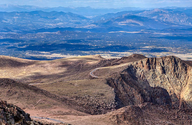 View & Roadway: A view looking toward the north reveals some of the jagged ridges near the peak as well as portions of the 19-mile paved road, which allows visitors to drive their own vehicles to the summit. It does not matter where you stand on the viewing deck at the summit, the views will be amazing. Photo by Gary Warren/ladailypost.com
