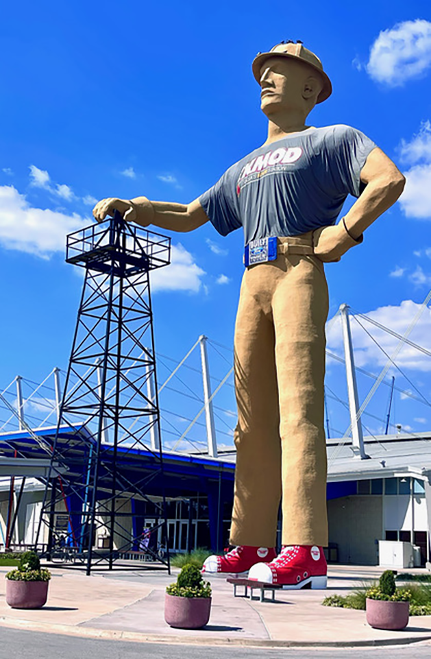 Driller: The Golden Driller is an iconic statute that stands at the Tulsa Expo Center, which is a few blocks from Route 66 but is still a popular stop for travelers. This statue is far larger than the ‘muffler man’ statutes seen elsewhere along Route 66. The Golden Driller was constructed in the 1960s and stands 76 feet tall. The statute depicts an oilfield worker of which there are many across Oklahoma. The statute is made of concrete and plaster and weighs a whopping 43,500 pounds and has become an iconic landmark in Tulsa. Photo by Gary Warren/ladailypost.com