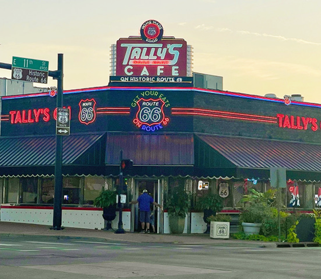 Tally’s Diner: A few blocks farther east on Route 66 is Tally’s Diner. The diner has been a staple non the highway for many years and continues to serve customers daily. The facility features an abundance of neon lighting on the exterior as well as the interior. The 50s style diner features many Route 66 decor items with many containing neon lighting as well as classic car decor which also feature neon lighting. Photo by Gary Warren/ladailypost.com