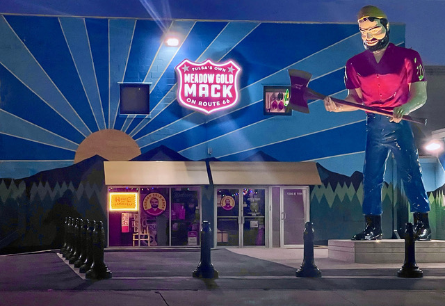 Meadow Gold Mack: Across the street from Buck’s On 66 is the ‘Friendly Lumberjack’ who stands in from of the Meadow Gold facility. The facility sells a variety of items including vintage items, books, and plants along with Tulsa related items and Route 66 items. Sitting next to the Meadow Gold facility is the Meadow Gold sign, which has been a part of Tulsa’s landscape for years. Photo by Gary Warren/ladailypost.com