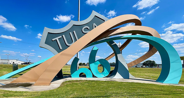 Route 66 Rising: A large sculpture sits on the east side of Tulsa welcoming travelers as they enter the city. The city is proud of its history and involvement in Route 66 as the highway passes through Tulsa for many miles. There are numerous landmarks around town that commemorate the highway including the ‘Route 66 Rising’ sculpture in east Tulsa. Photo by Gary Warren/ladailypost.com