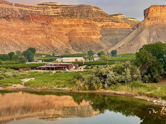 Colorado River: The setting sun illuminates the cliff formations of the Grand Mesa in Palisade, Colo., as the Colorado River twists and turns as it flows through the area. The last light of day creates a beautiful red color on the cliffs and reflects beautifully in the river. Palisade is known for its rich agriculture and fruit orchards, and more recently, vineyards. Photo by Gary Warren/ladailypost.com