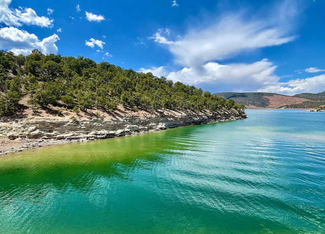 Green River: The Green River opens up more like a lake near the southern end of Flaming Gorge National Recreation Area in Utah. A boat passed by over a quarter mile away, and I viewed the waves it created as they traveled across the river in my direction. By the time the waves reached the shore, they were simply ripples in the water, which created a nice view of the area. The sunlit afternoon and the clear waters of the Green River were an enjoyable stop during our tour of the Flaming Gorge National Recreation Area. It is easy to see why the river is named Green River! Photo by Gary Warren/ladailypost.com