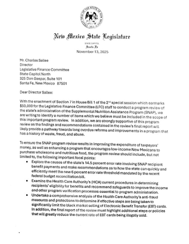 SANTA FE — This week, Republican legislators were successful in their attempt to incorporate an in-depth audit of New Mexico’s administration of Supplemental Nutrition Assistance Program (SNAP) benefits.