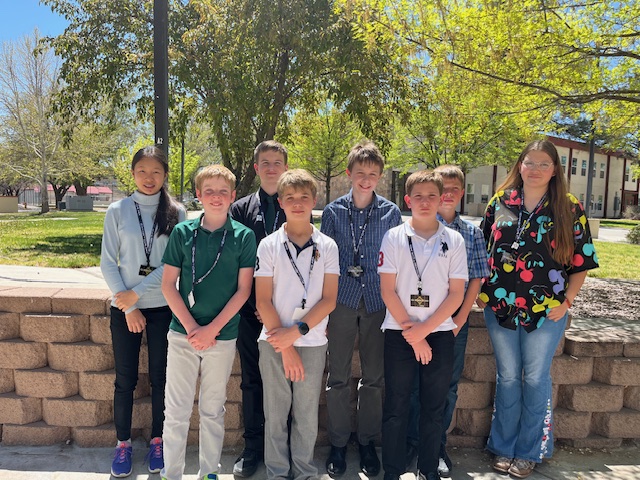 Junior division students from Los Alamos include (left to right) Sequoia Ke, James Junghans, Andrew Gilbertson, Daniel Yampolsky, Samuel Cawkwell, Zachary White, Liam Colgan and Isabella Martinez. Courtesy photo