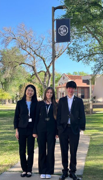 Senior division participants Alyssa Sun, Lilia Viteva and Tate Plohr pose on the campus of New Mexico Tech while attending the New Mexico State Science Fair. Courtesy photo