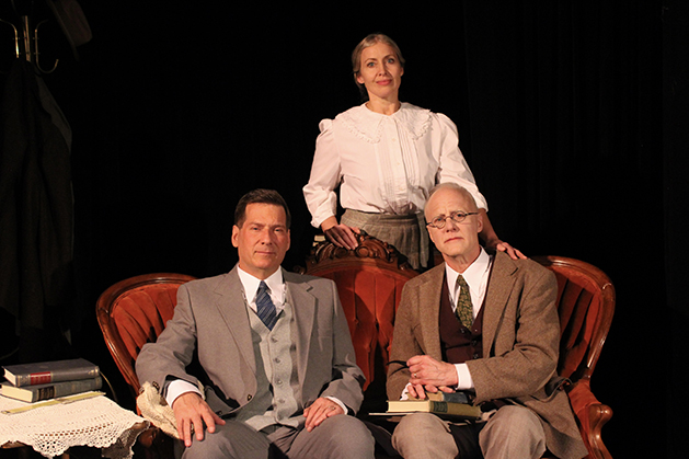 ‘Copenhagen’ starring Jeff Favorite as Werner Heisenberg, Angel Virgillio as Margrethe Bohr and Thomas Graves as Neils Bohr, focuses on a conversation between two Nobel Prize winning physicists during WWII. Photo by Ashely Horner/LALT