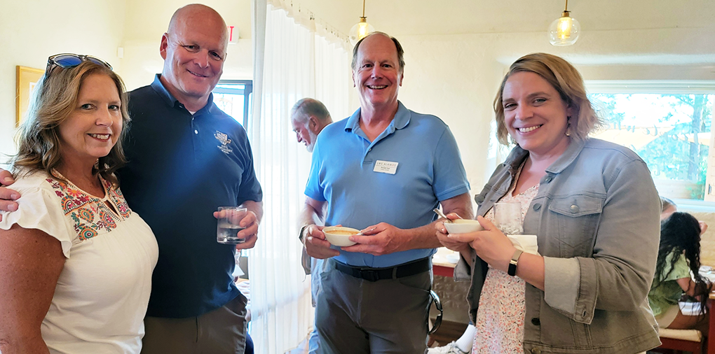 From left, LAPS teacher Jodi Hughes, her husband Fire Chief Troy Hughes, County Councilor Randall Ryti and Municipal Court Judge Elizabeth Allen chat at the ribbon cutting and menu preview event Wednesday evening at Beef and Leaf Cafe at 3801 Arkansas Ave., hosted by the Los Alamos Chamber of Commerce. Photo by Carol A. Clark/ladailypost.com