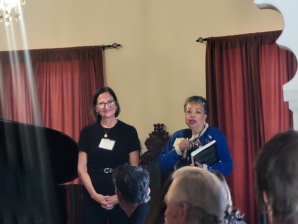 IWF-NM President-elect Barbara Vigil, left, and President Barbara ‘BJ’ Jones speak with members and guests at the Dec. 8 holiday gathering at Animante de Rondeña in Albuquerque. Photo by Carol A. Clark/ladailypost.com