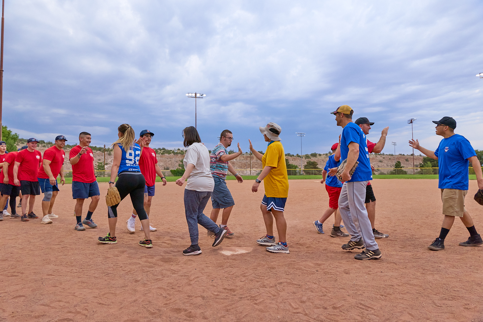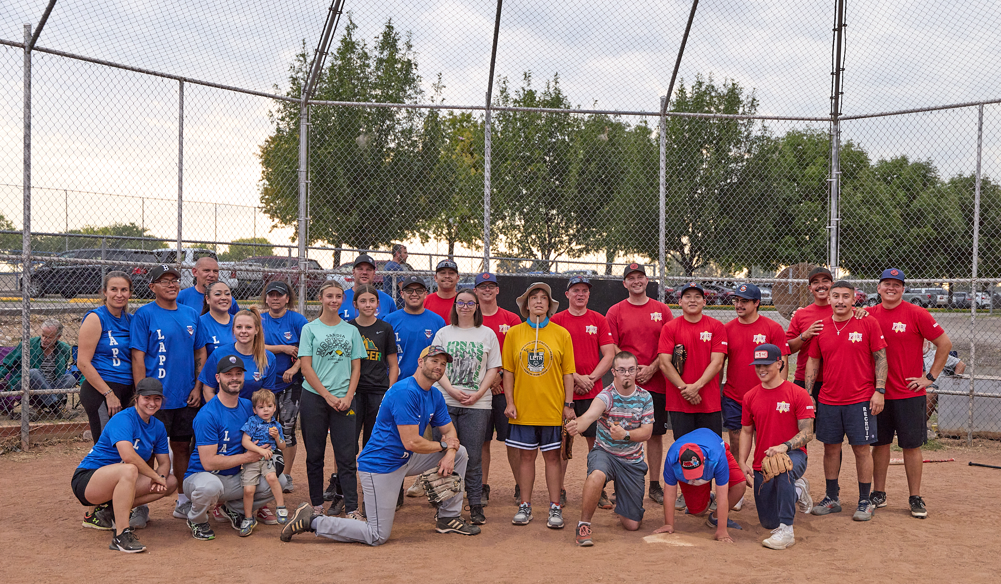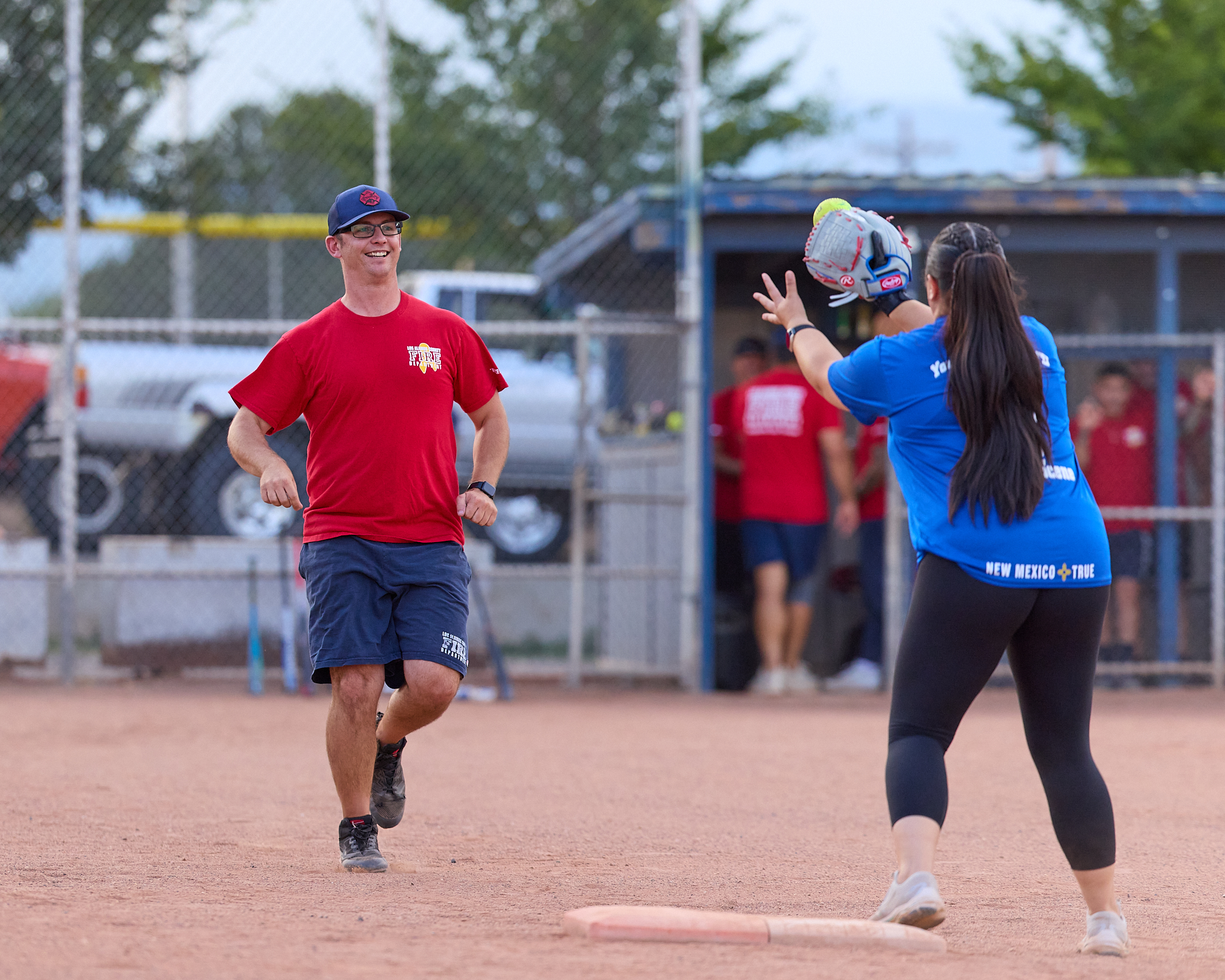 Scene from the Los Alamos Police Department (LAPD) and Los Alamos Fire Department (LAFD) charitable softball game dubbed ‘Guns vs. Hoses’ played Friday at Overlook Park in White Rock. Following a fun and exciting match, the hoses doused the guns 38-7. The teams played to raise money for the Special Olympics. It has been a long-standing tradition for LAPD and LAFD to come together to support local Special Olympics athletes. Police and Fire members paid $25 per person to put on this game for the public; the game was free to watch, with any donations going to support Special Olympics. For more information about the local Special Olympics program, contact Det. Cindy Garcia at 505.662.8222. Photo by Nate Limback/ladailypost.com