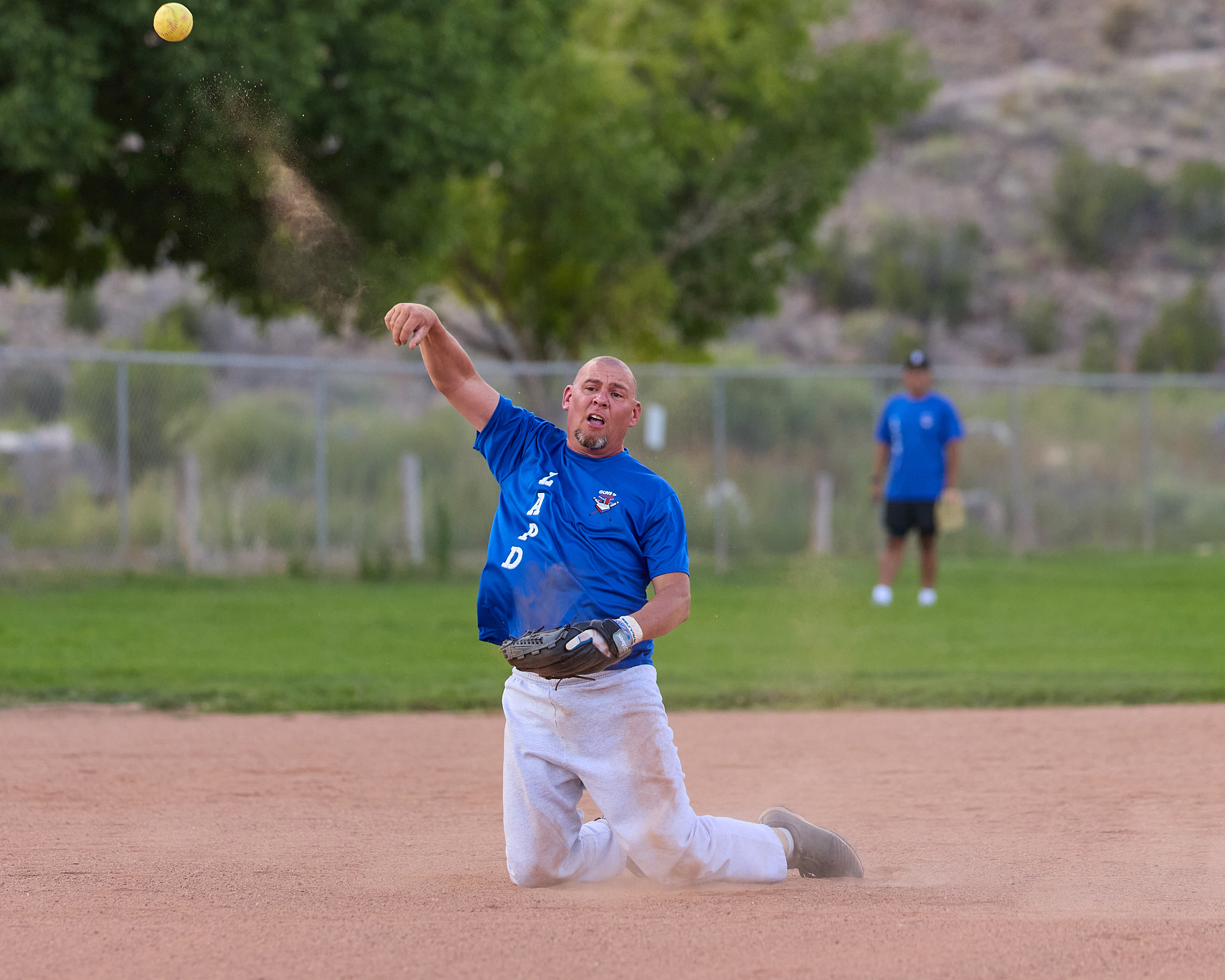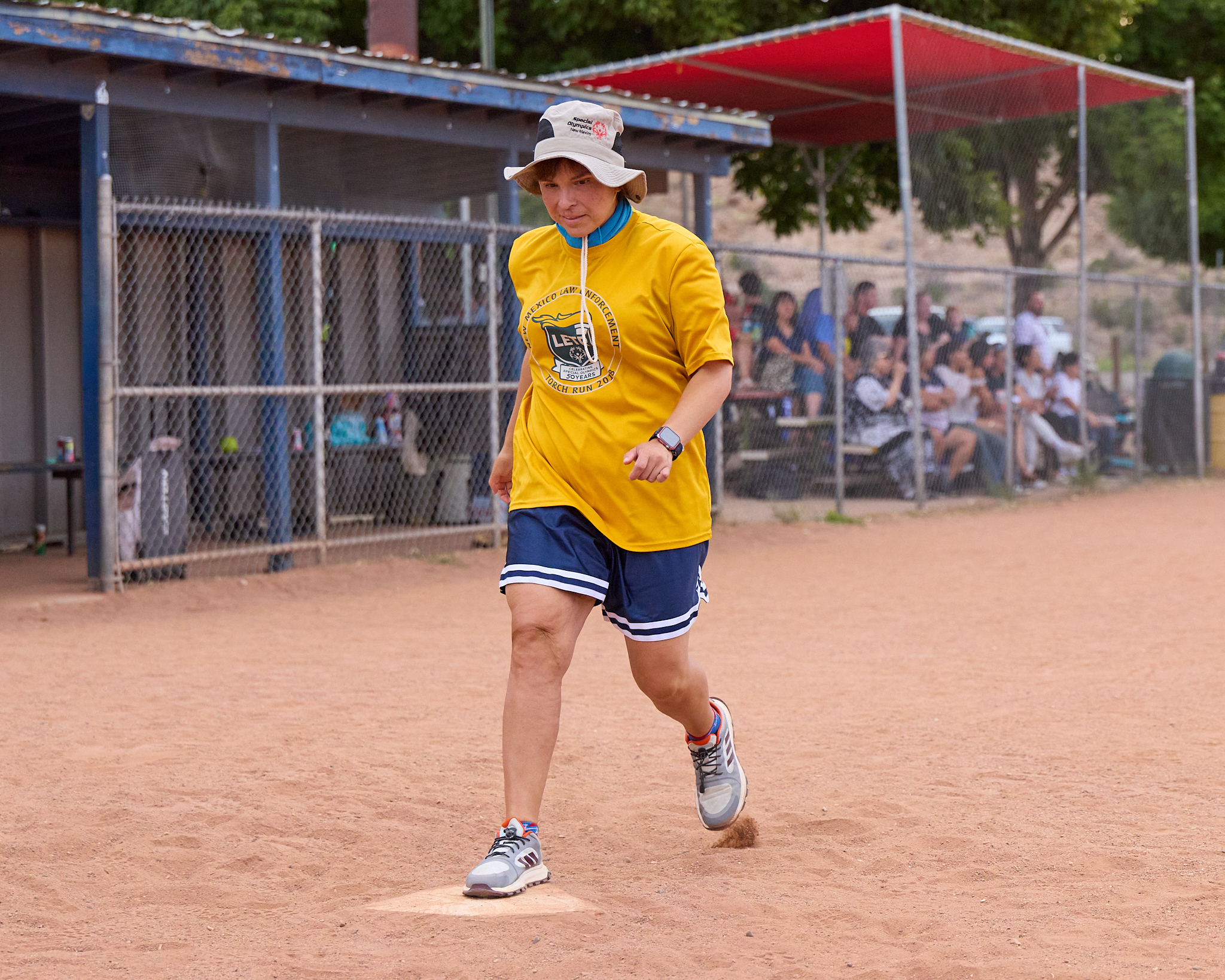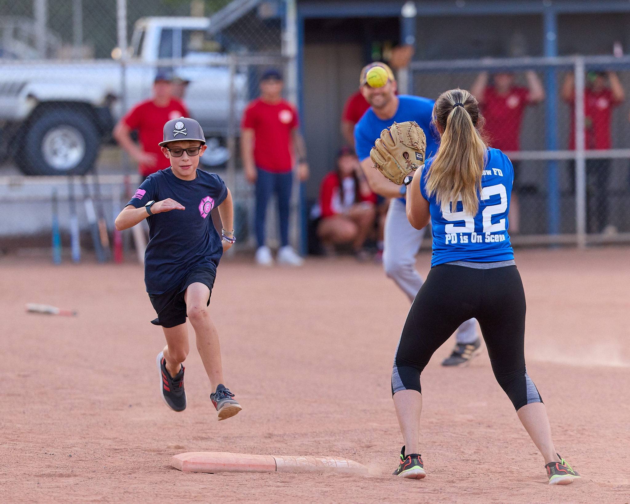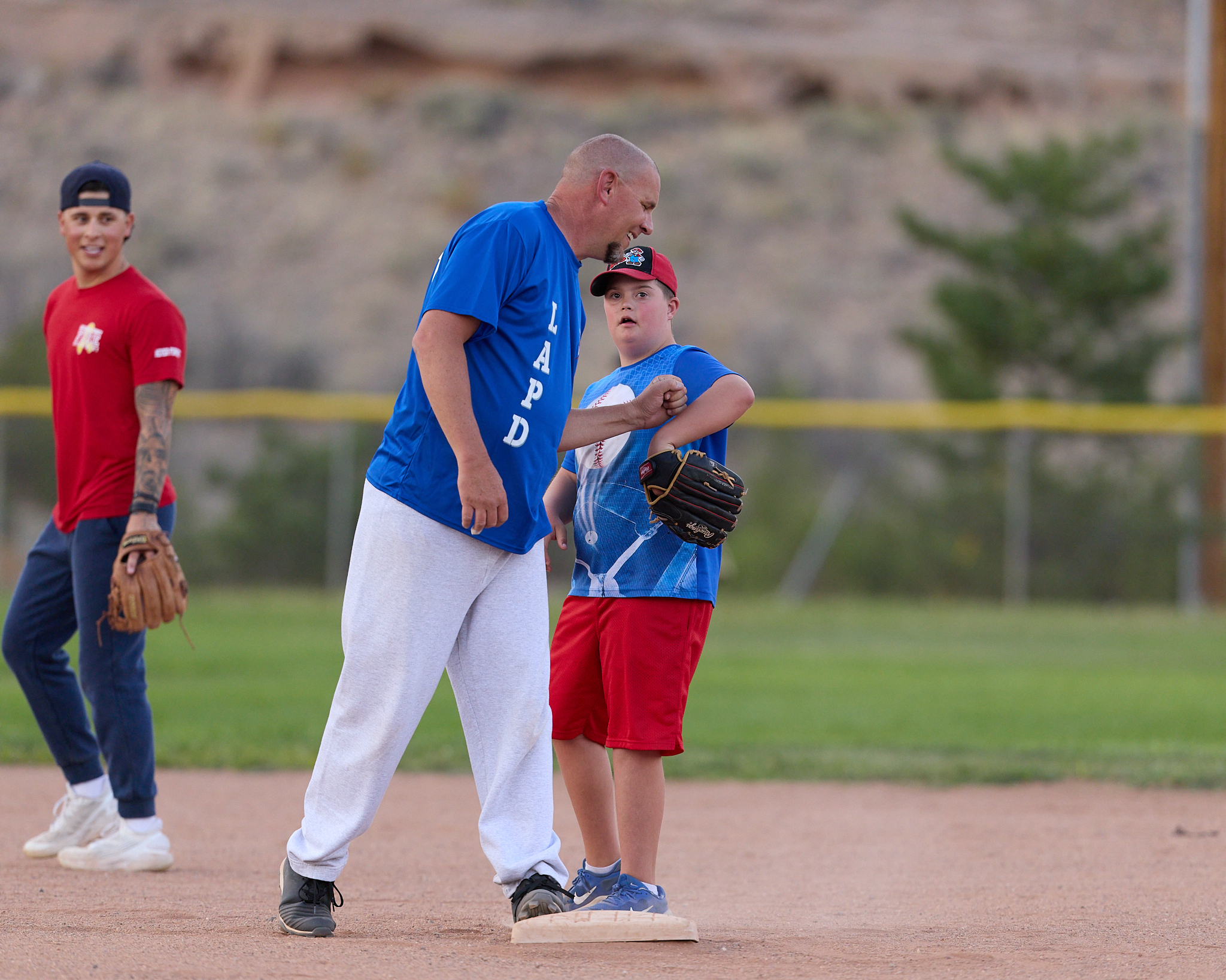 Scene from the Los Alamos Police Department (LAPD) and Los Alamos Fire Department (LAFD) charitable softball game dubbed ‘Guns vs. Hoses’ played Friday at Overlook Park in White Rock. Following a fun and exciting match, the hoses doused the guns 38-7. The teams played to raise money for the Special Olympics. It has been a long-standing tradition for LAPD and LAFD to come together to support local Special Olympics athletes. Police and Fire members paid $25 per person to put on this game for the public; the game was free to watch, with any donations going to support Special Olympics. For more information about the local Special Olympics program, contact Det. Cindy Garcia at 505.662.8222. Photo by Nate Limback/ladailypost.com