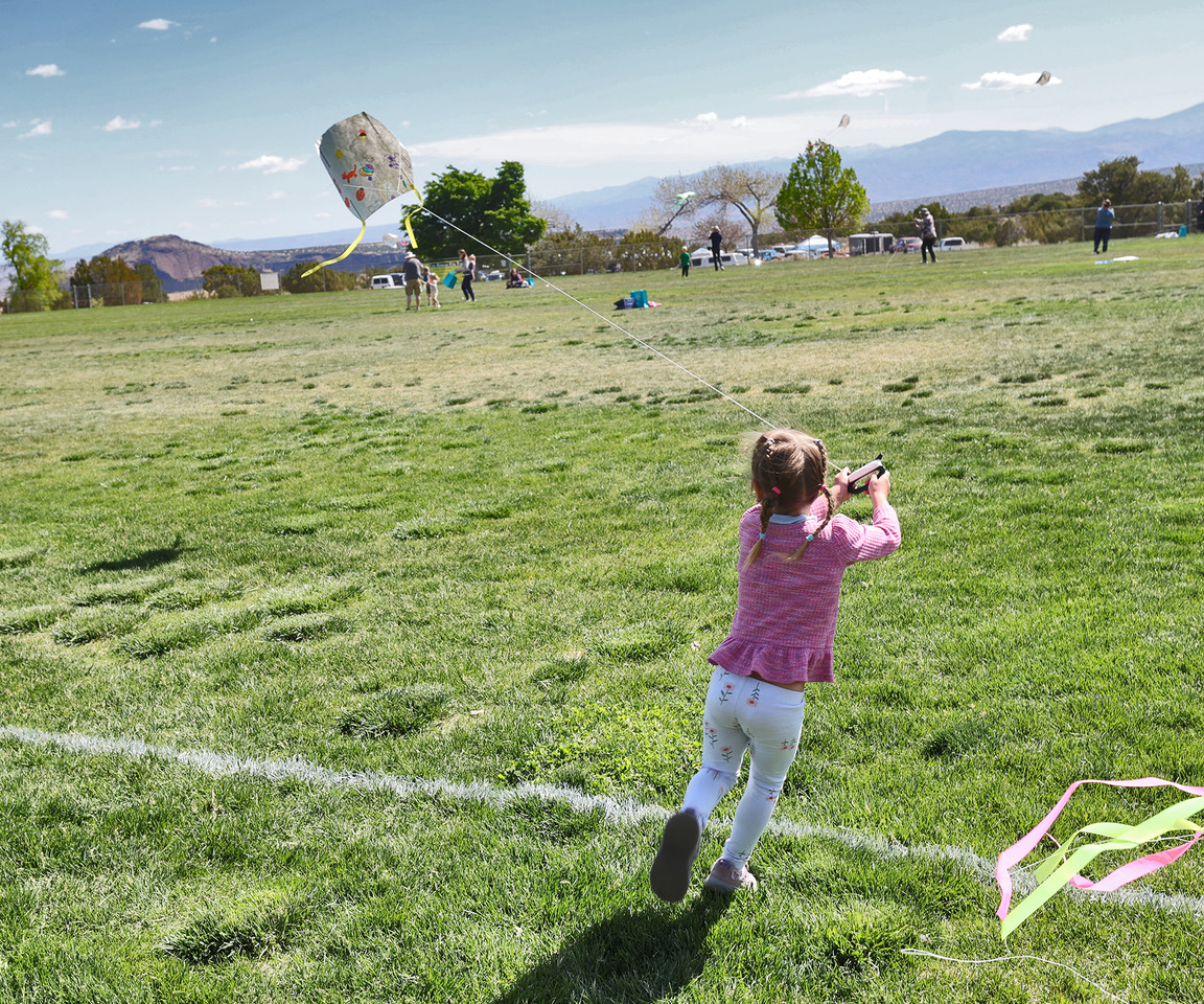 Scene from Saturday’s 2026 Los Alamos Kite Festival, hosted this weekend by the Los Alamos Arts Council in Dara Jones Field at Overlook Park in White Rock. This is the 30th annual Kite Festival and is sponsored by Century Bank. Today’s event will include: 10 a.m. to 1 p.m. kite building workshops with volunteers, 1-3 p.m. self-guided workshops, 10 a.m. to 4 p.m. flying, and 11 a.m. to 1 p.m. kite hospitals will be open for business. Photo by John McHale/ladailypost.com
