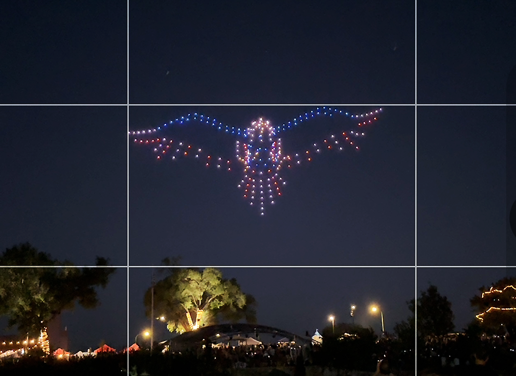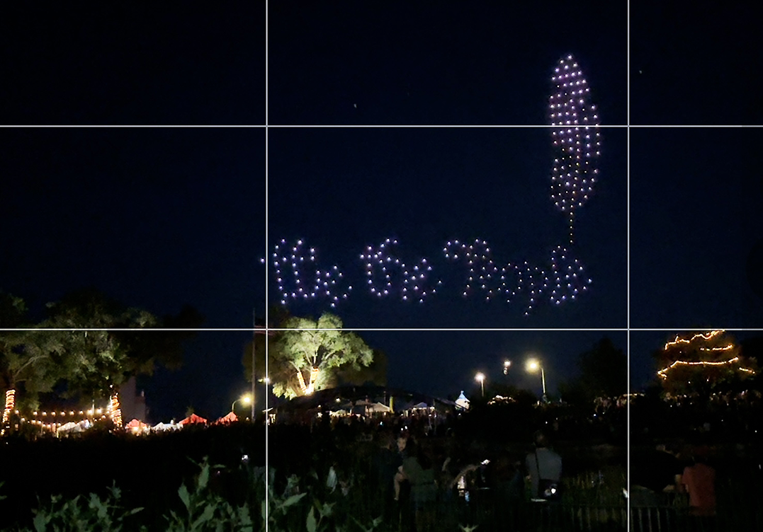 Scene of the launch of the 4th of July spectacular drone show provided by Sky Elements Friday night at Ashley Pond Park. This drone show replaces the beloved Kiwanis Club of Los Alamos 4th of July Fireworks Extravaganza, which delighted crowds for years at Overlook Park in White Rock. Photo by KayLinda Crawford/ladailypost.com