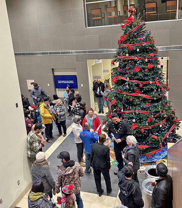 Scene from the lighting of the holiday tree Saturday night in the lobby of the Municipal Building. Photo by Kirsten Laskey/ladailypost.com