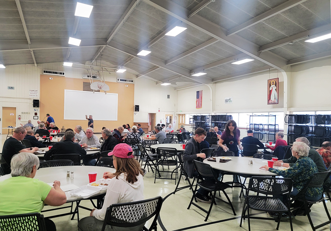 Scene from the final Knights of Columbus fish dinner for the 2025 Lenten Season this evening in Immaculate Heart of Mary Parish Hall on Canyon Road. Photo by Carol A. Clark/ladailypost.com