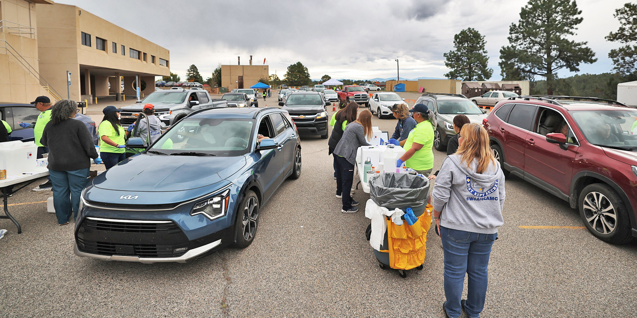 Cars line up Saturday morning for the annual free Drive-Thru Flu Shot Clinic for ages 9+ provided for the community by Los Alamos Medical Center (LAMC). Photo by John McHale/ladailypost.com