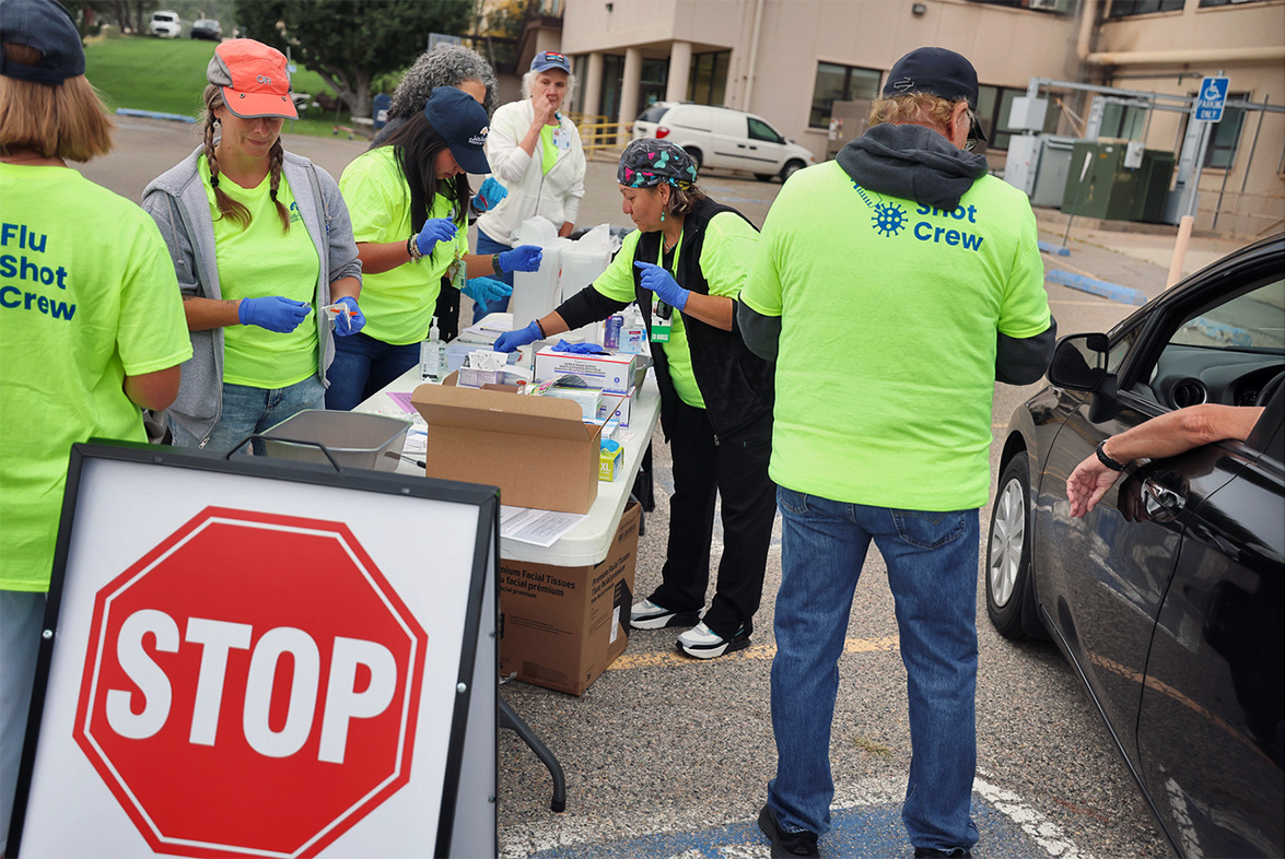 The Flu Shot Crew prepares for the high volume of traffic waiting for flu shots provided free to the community by LAMC at its annual Drive-Thru Flu Shot Clinic in the parking lot behind the medical center. Photo by John McHaleladailypost.com