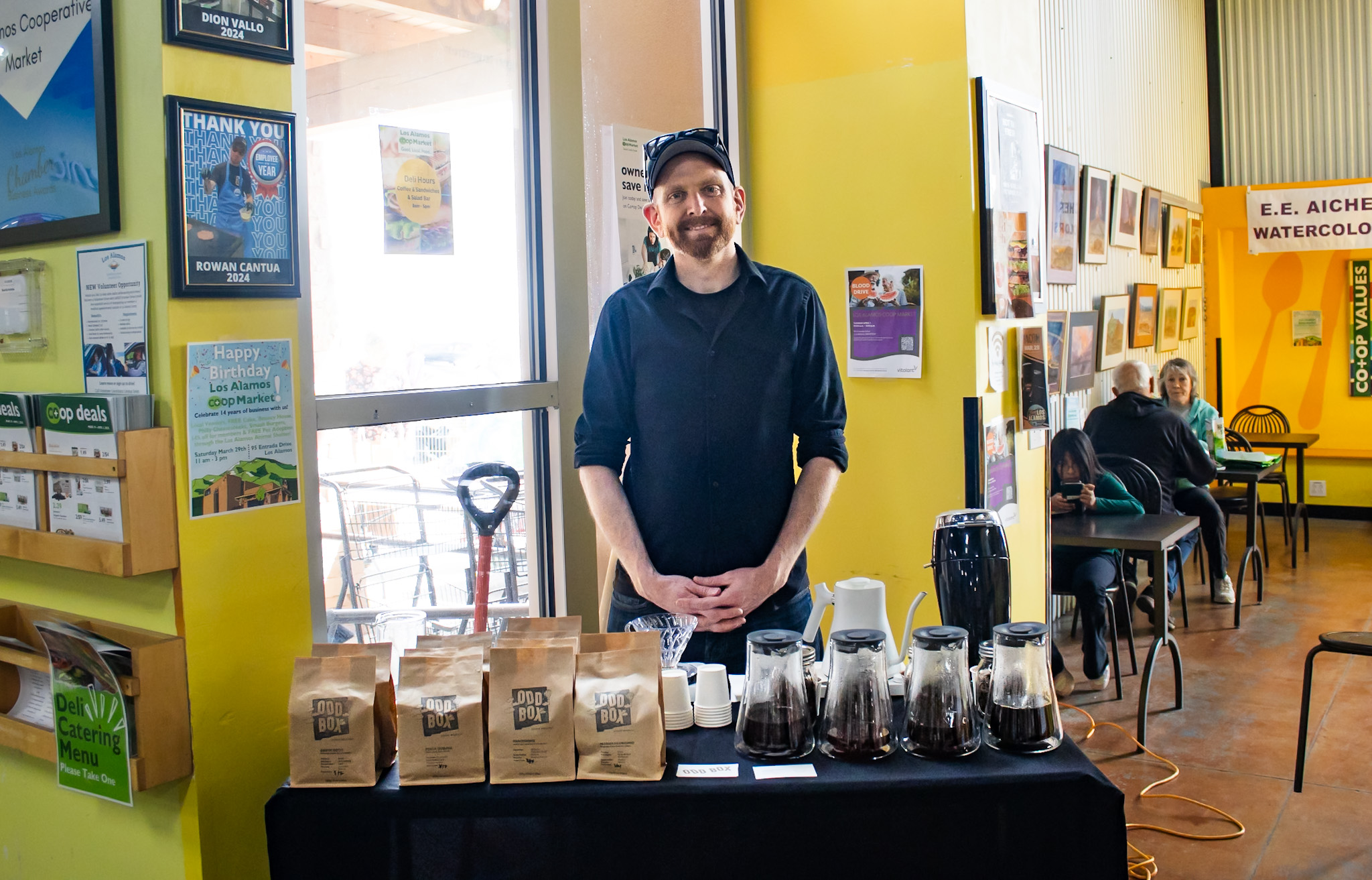 Odd Box Coffee Roasters owner Tom Patton samples fresh coffee for co-op patrons. Photo by Rowan Cantua