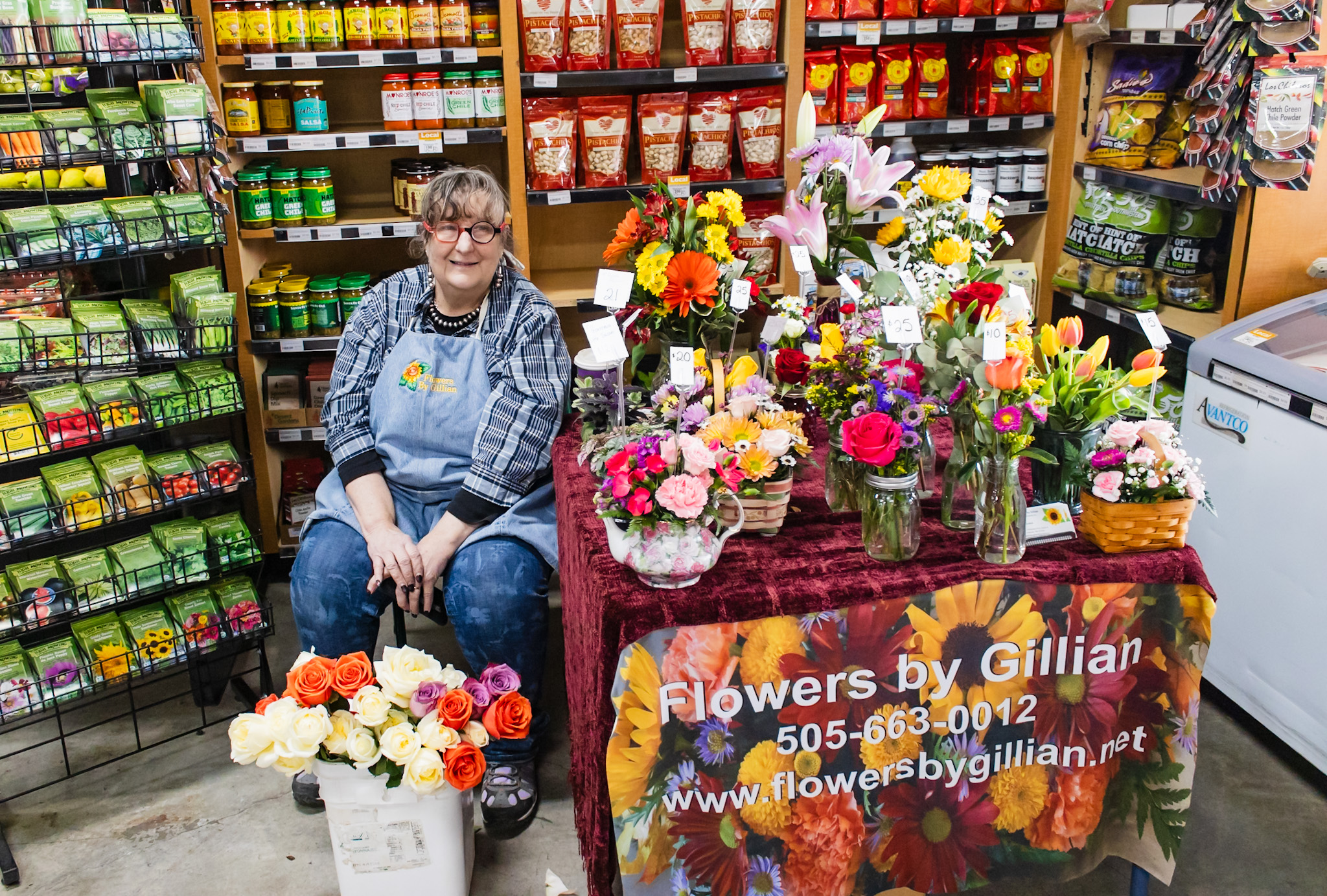 Gillian Sutton treats co-op shoppers to free roses while selling her floral arrangements. Photo by Rowan Cantua