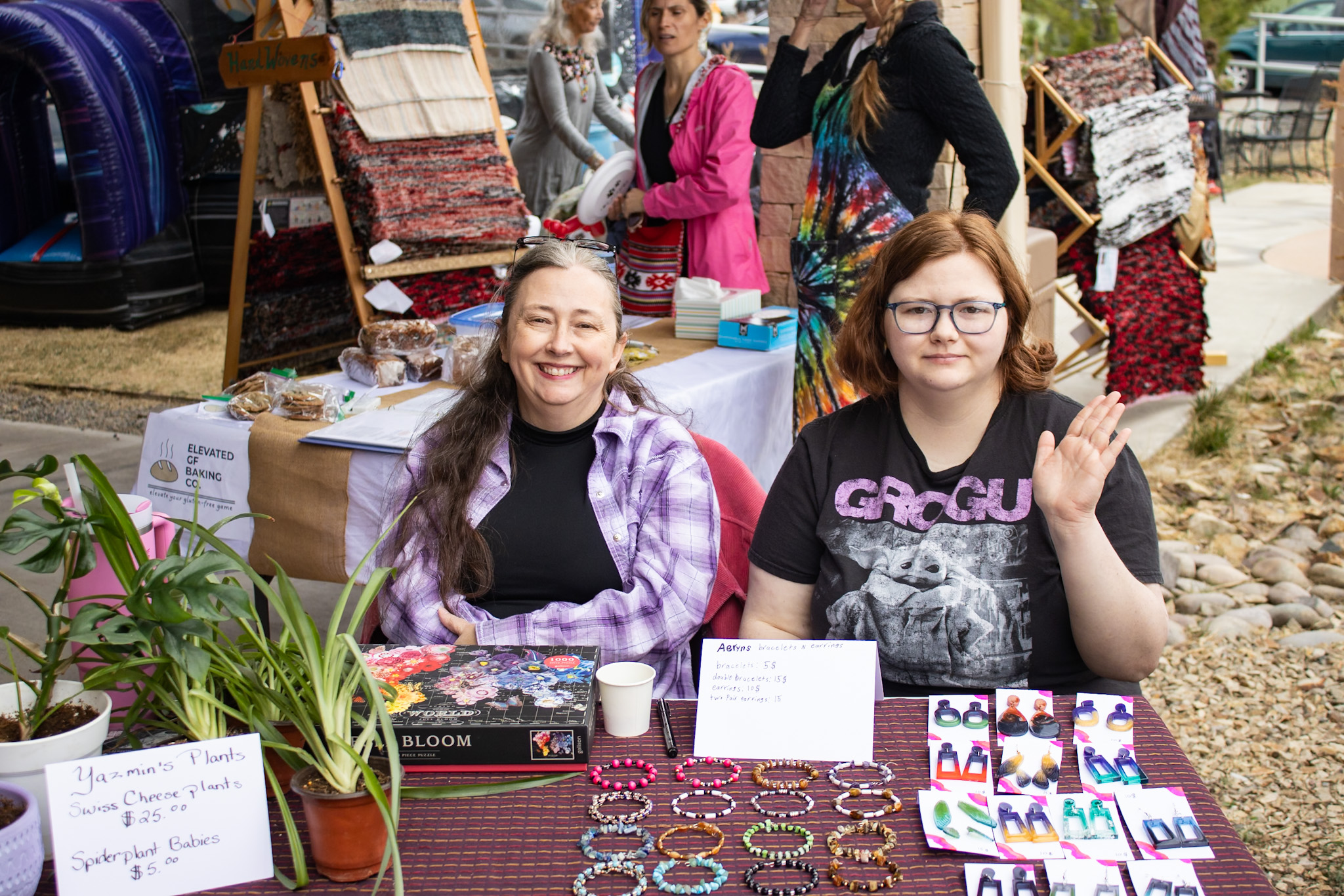 Josetta and her daughter Aeryn pose with handmade jewelry. Photo by Rowan Cantua