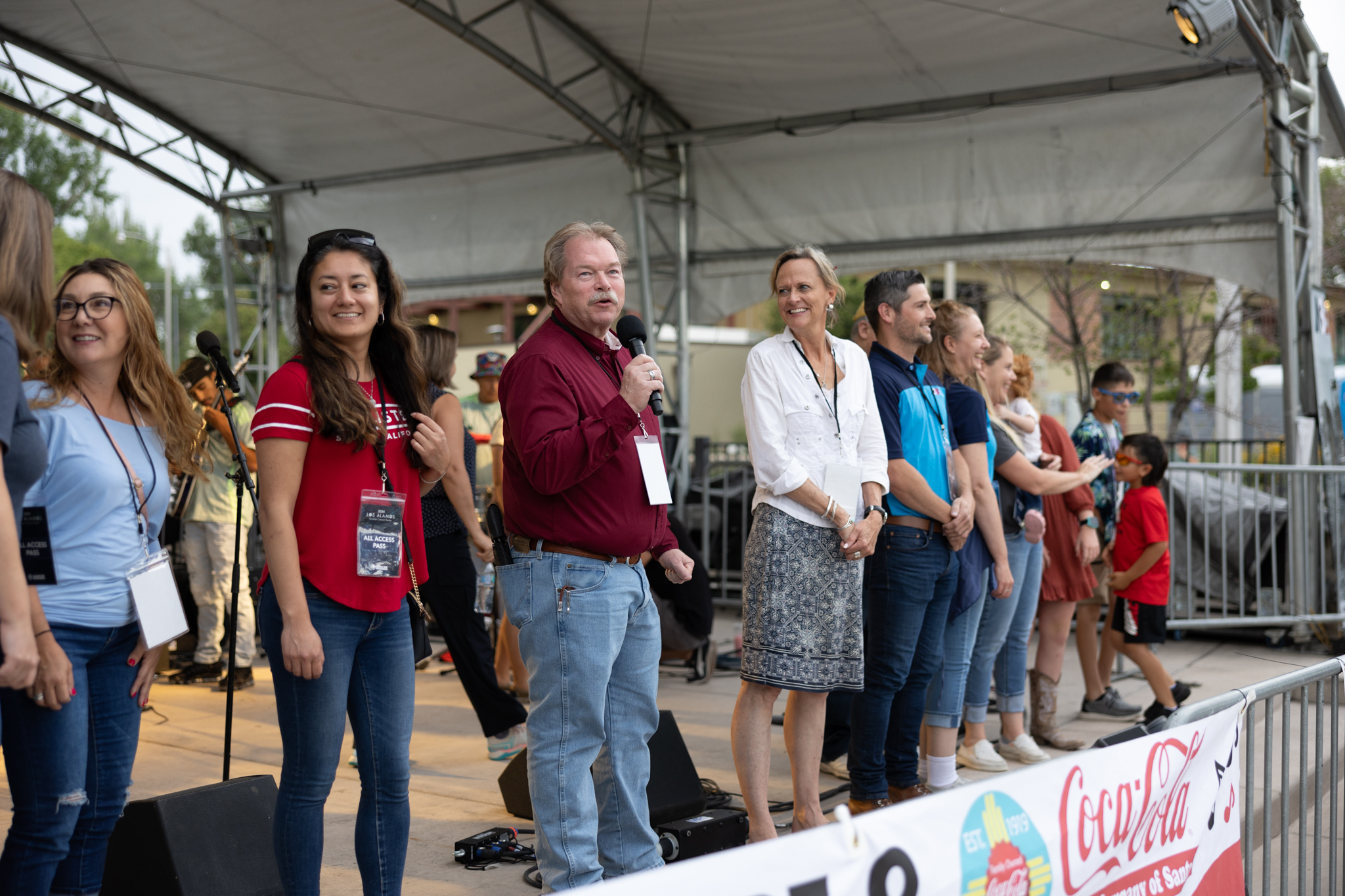 Members of NB3 Los Alamos, which sponsored Friday’s Summer Concert speak to the crowd before headliner El Gozao takes the stage at Ashley Pond Park. The Los Alamos Summer Concert Series is produced by Sancre Productions and the Los Alamos County Community Services Department. Photo by Nate Limback/ladailypost.com
