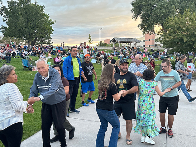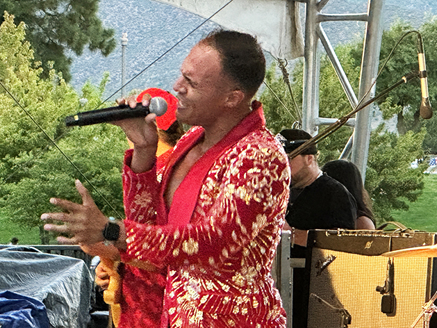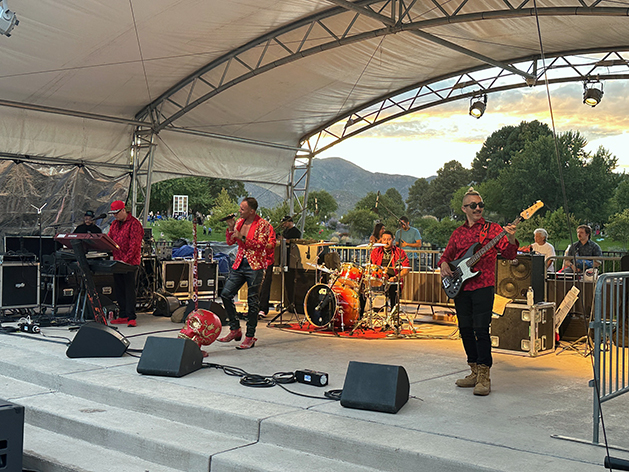 Severo y Grupo Fuego, a Latin band, entertains the crowd Friday night at Ashley Pond Park. The show was part of the Los Alamos Summer Concert Series, produced by the Los Alamos County Community Services Department and Sancre Productions. The Sept. 5 concert is the last of the 2025 season and will feature Sister Mary Mayhem. Photo by Kirsten Laskey/ladailypost.com