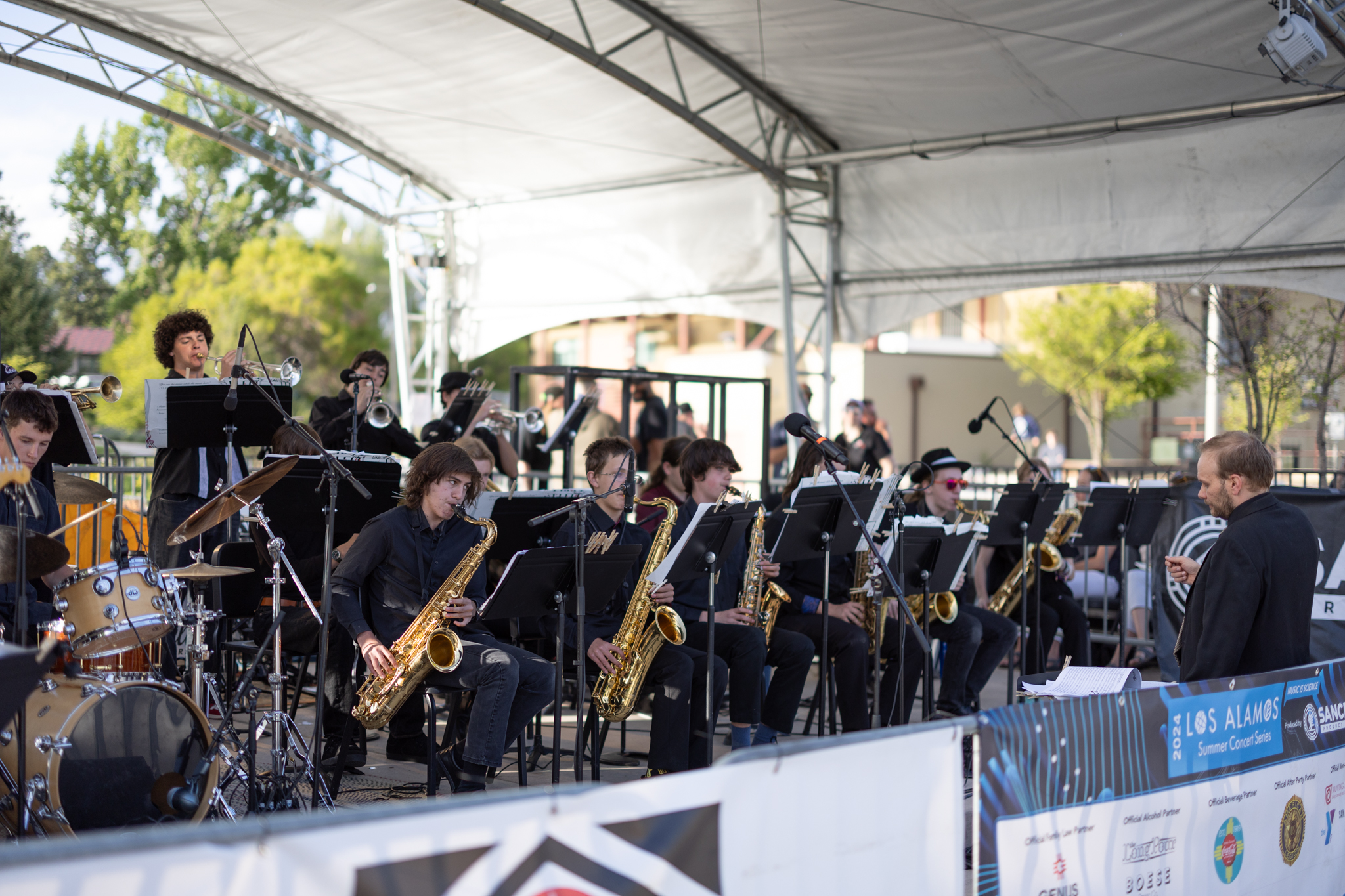 The Los Alamos High School Jazz Ensemble was the opening act for the first Summer Concert of the 2024 season Friday evening at Ashley Pond Park. The Jazz Ensemble opened for The Powell Brothers. Photo by Nate Limback/ladailypost.com