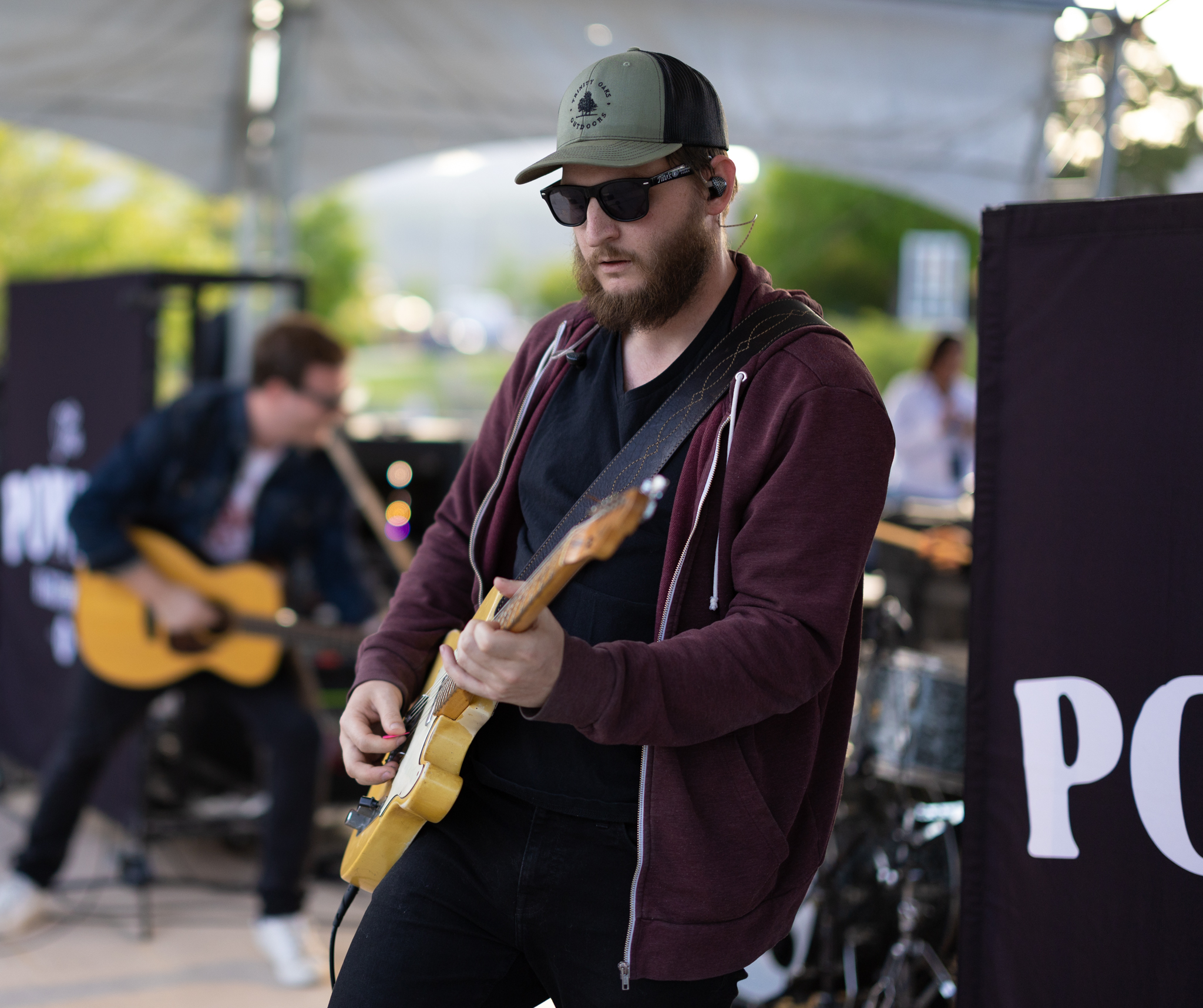 Taylor Powell on lead guitar and vocals performing with The Powell Brothers Friday at the Summer Concert. Photo by Nate Limback/ladailypost.com