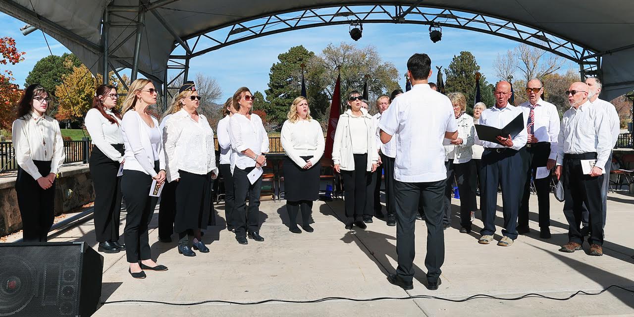 The Los Alamos Choral Society performs the National Anthem under the direction of Derek Gilmore at the 2025 Veterans Day Ceremony on Tuesday at Ashley Pond Park. Photo by John McHale/ladailypost.com