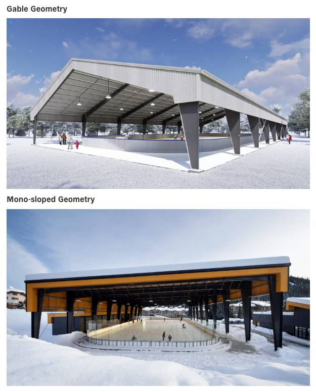 Between Jan. 9-29, 2025, an initial survey for this study solicited broad input from the community regarding a shade structure for the Ice Rink. Results of that survey can be viewed on the project web page under “Completed Survey Responses” via this link and demonstrated overwhelming support for a structure that can provide not only protection from the sun, but rain and snow while also providing full, year-round coverage of the arena including the rink floor, player boxes, and stands.