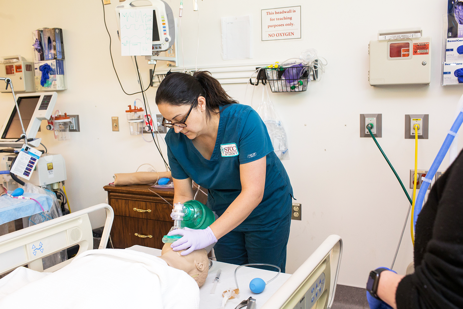 Respiratory Care student in the simulation lab. Courtesy/SFCC
