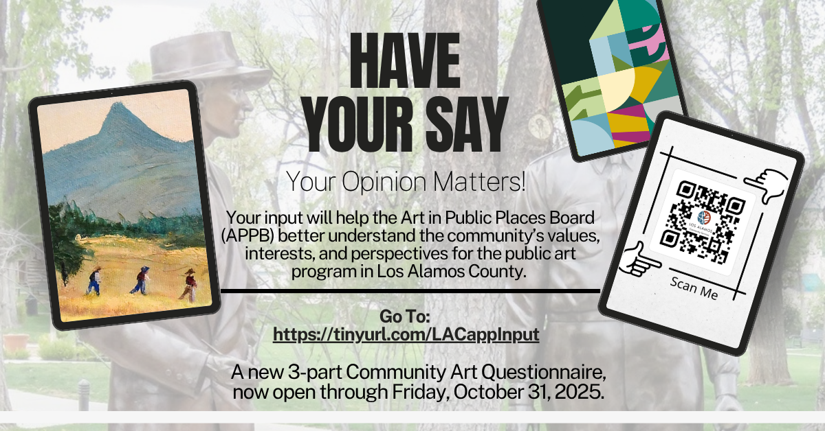 The Los Alamos Art in Public Places Board (APPB) wants to hear from you! A new Community Art Questionnaire is now open, and your input will help shape the future of public art in Los Alamos County.