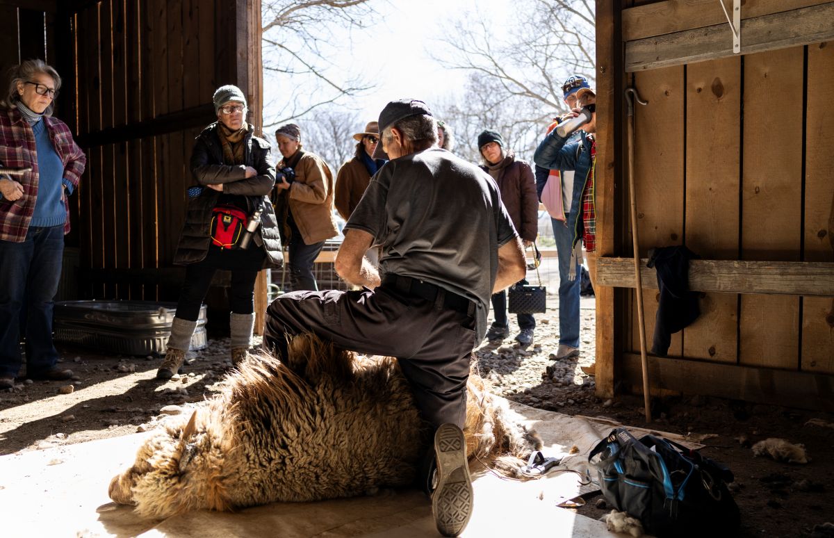 The event takes place on “Dawn ’Til Dusk” day, when the site opens at 6:45 a.m. and closes at 7:30 p.m. The day will include hand-shearing of the sheep by Kerry Mower using traditional double-bow shears, hands-on wool skirting, a children’s story time and craft activity, workshops, and local food trucks Lazy Buffalo, Manko, Teriyaki Queen, and Fistful of Butter.