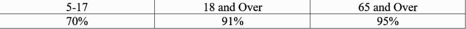 CDC data is shown below for the share of each age group that is “fully vaccinated” in Los Alamos County. The definition of “fully vaccinated” does not include boosters.